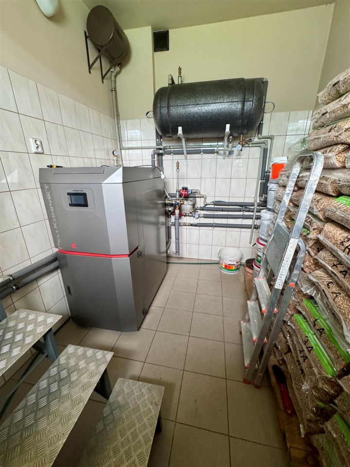 Dom ogrzewany jest za pomocą nowego pieca na pellet o mocy 11kW z wbudowanym zasobnikiem o pojemności 90 litrów, posiada centralne ogrzewanie jak również w poszczególnych pomieszczeniach ogrzewanie podłogowe.
