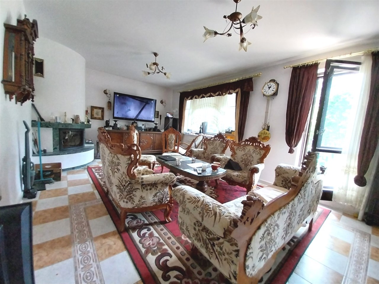 I PIĘTRO: Klimatyczny salon z kominkiem i wyjściem na słoneczny taras