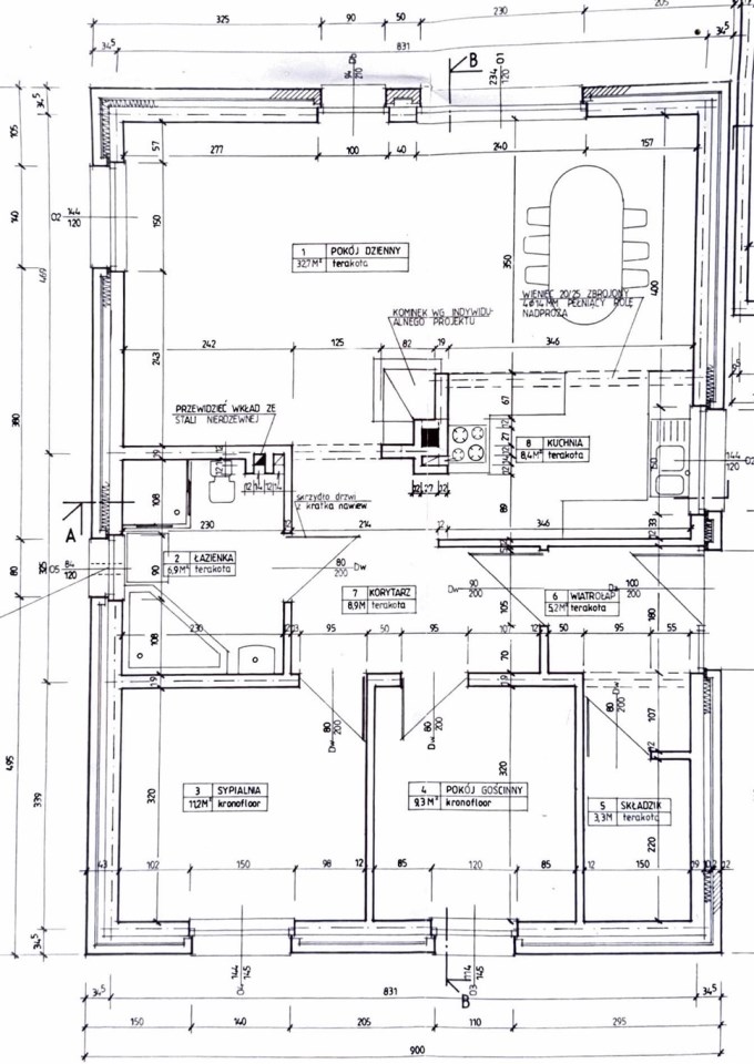 Układ pomieszczeń domu: