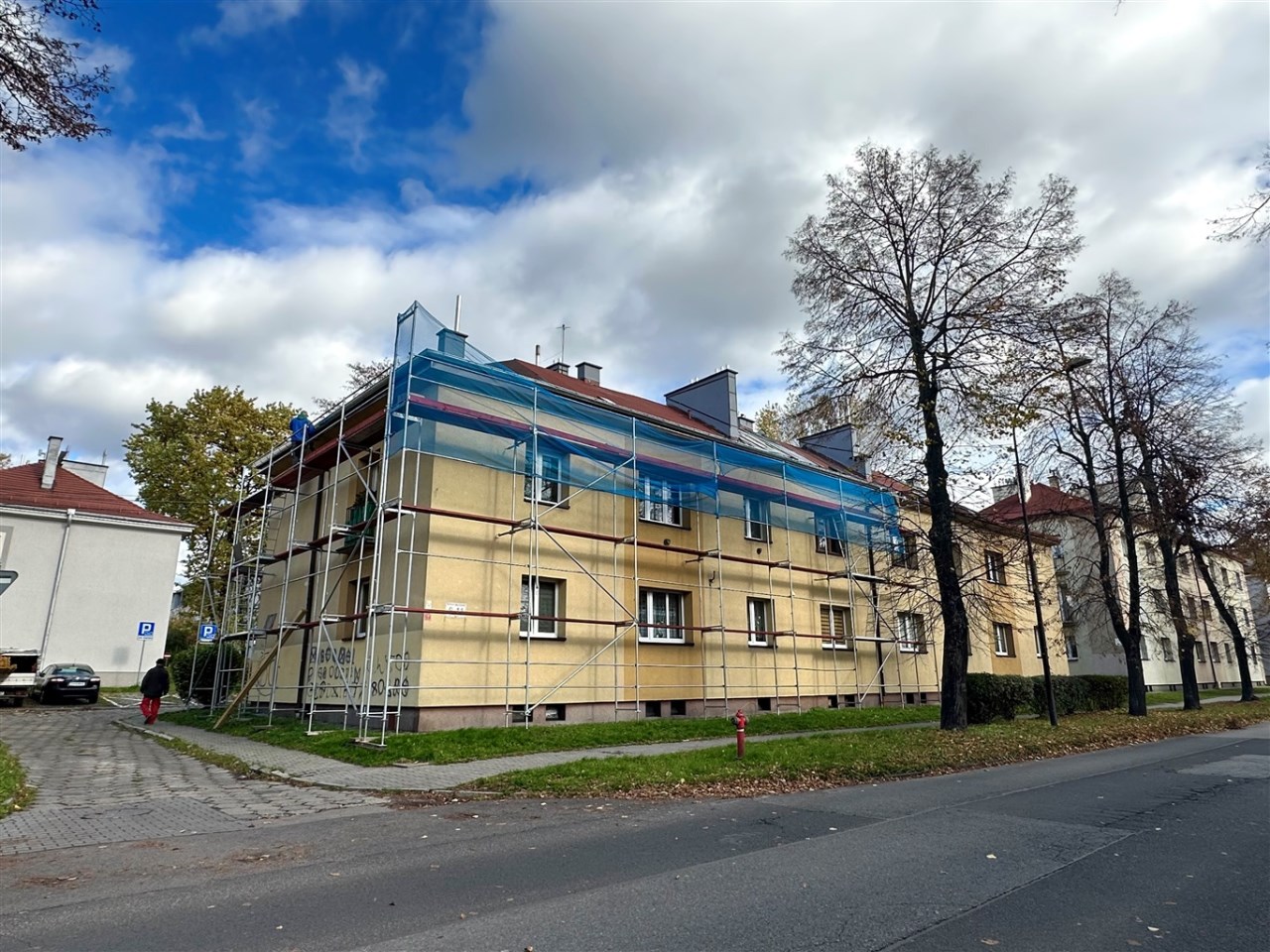 Obecnie trwa remont dachu budynku.