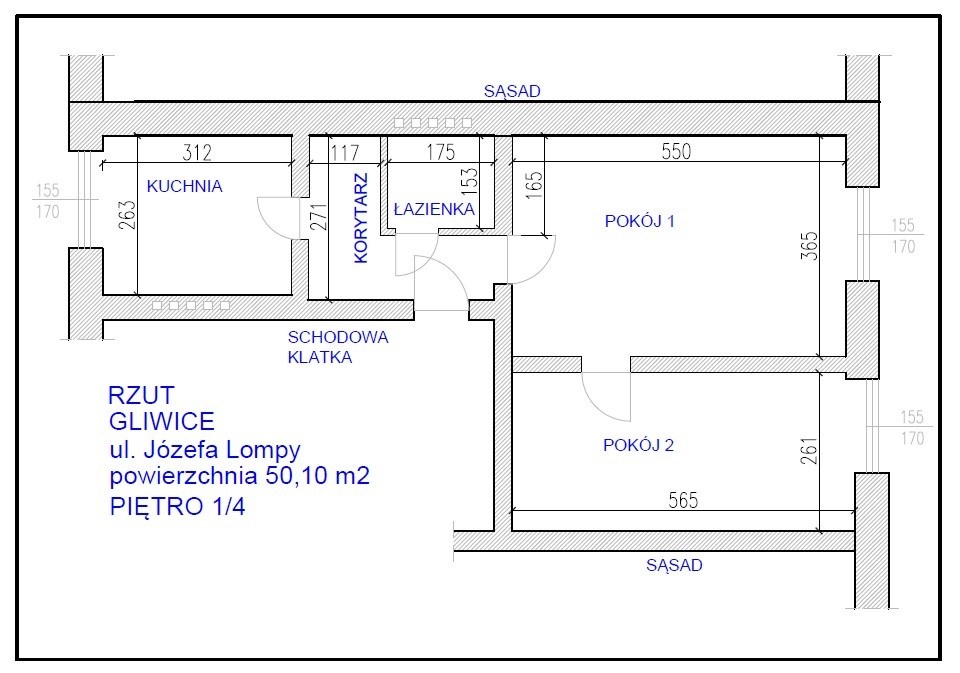Przedstawiam Państwu przestronne dwupokojowe mieszkanie zlokalizowane przy ul. Lompy w Gliwicach o powierzchni 50,10 m2, na 1 piętrze, w pięciokondygnacyjnym budynku po termomodernizacji w samym sercu miasta.