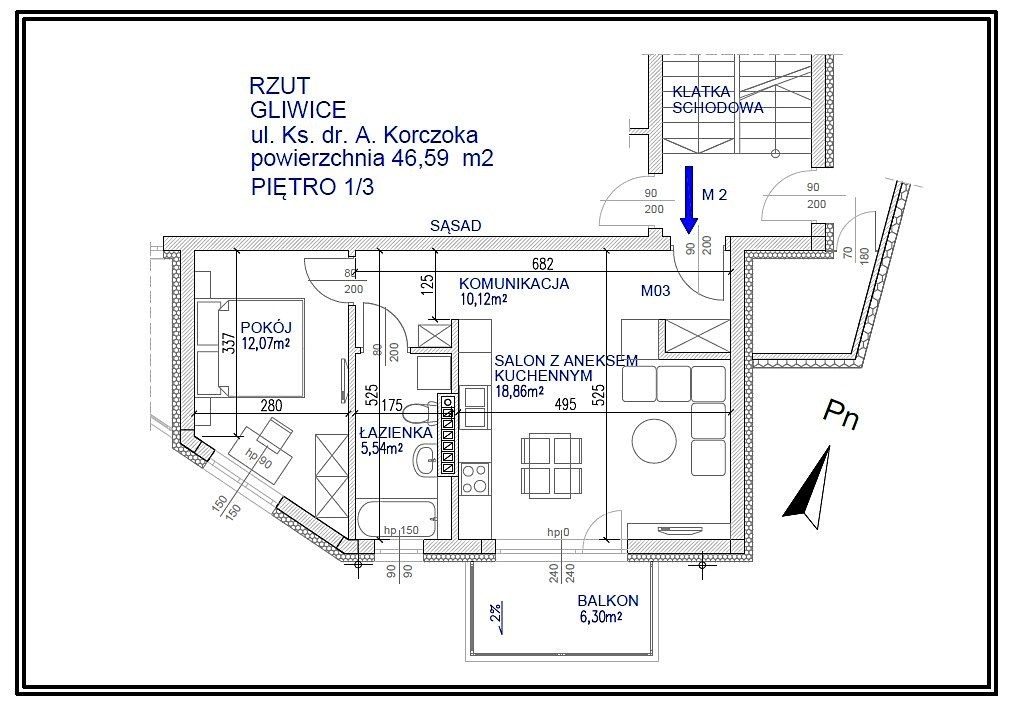 | Powierzchnia użytkowa [m2] | 46,59 m² |